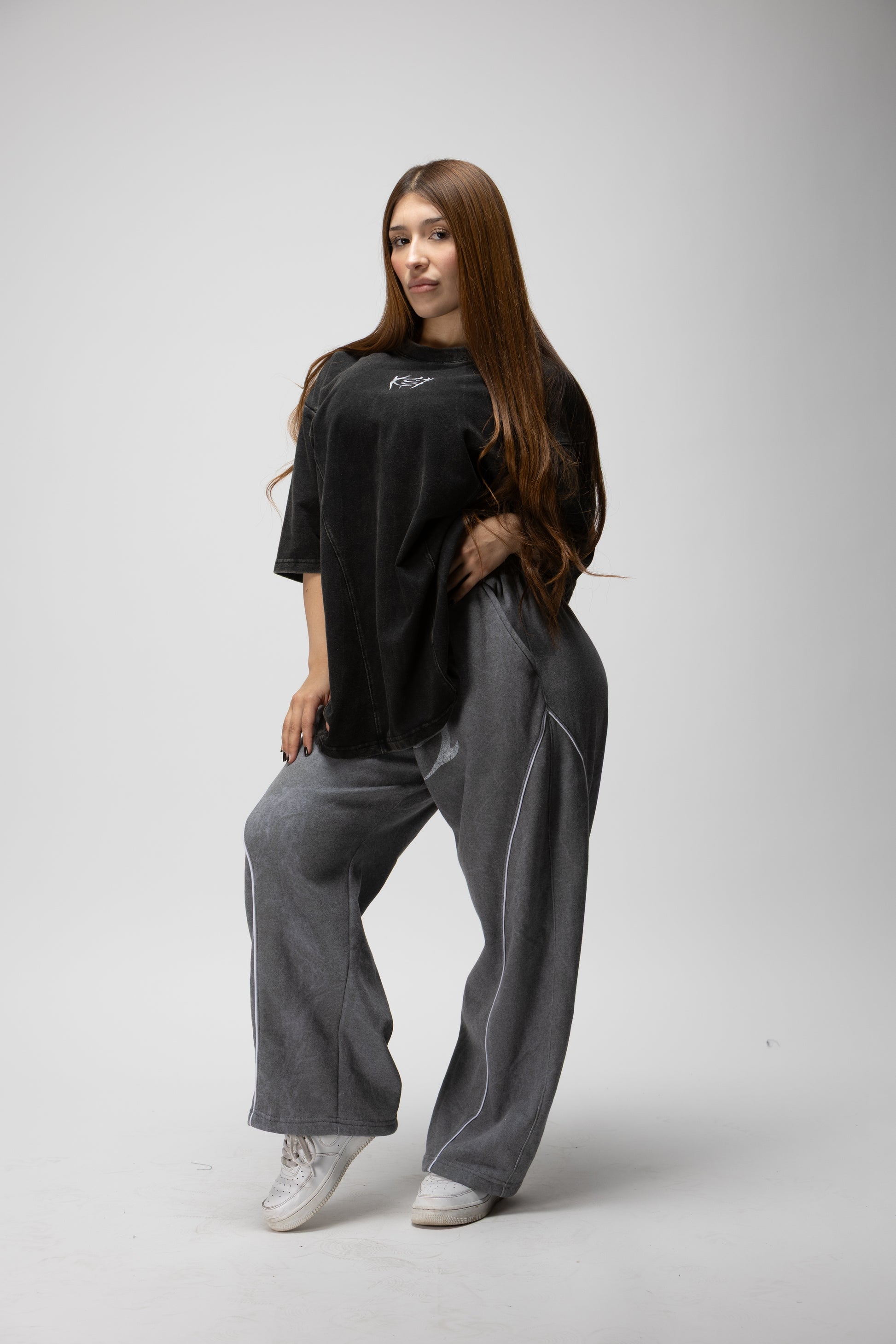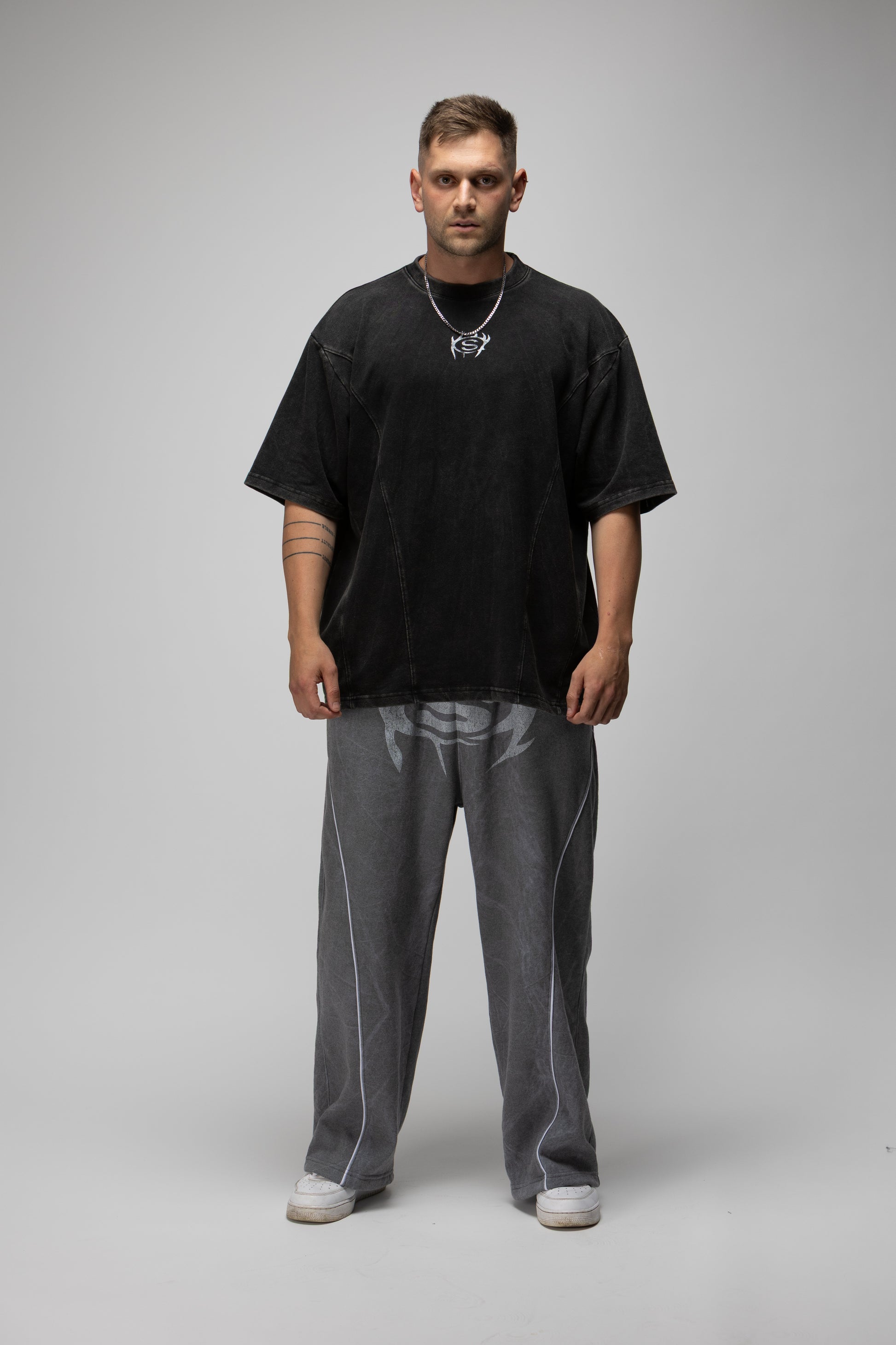 Polera oversize confeccionada en algodón pesado con efecto lavado, que le da una textura única y un tono oscuro con carácter. Su fit amplio con hombros caídos ofrece una caída firme y una silueta sólida.
